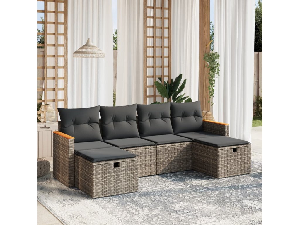 - Pohodlné sezení: Tento venkovní nábytek se silně polstrovanými poduškami a polštáři nabízí pohodlné sezení.