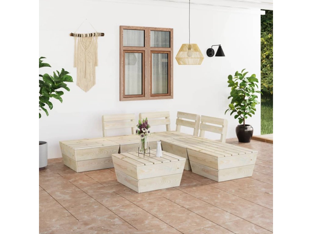 Na této 6dílné zahradní sedací soupravě z palet si můžete skvěle odpočinout, užívat si krásného počasí, zdřímnout si nebo si povídat s rodinou či přáteli. Nadčasový design nábytku z palet vnese na vaši zahradu, terasu či do obývacího pokoje rustikální kouzlo.
