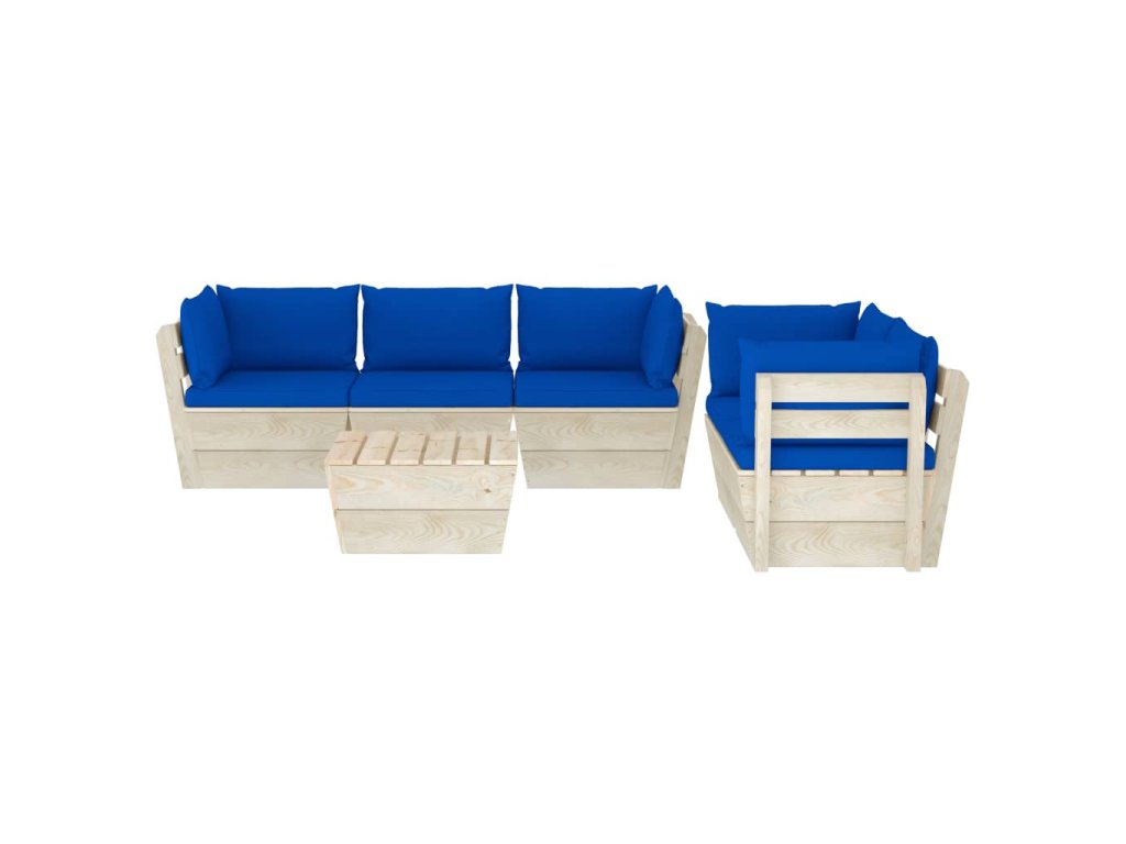 Na této 6dílné zahradní sedací soupravě z palet s poduškami si můžete skvěle odpočinout, užívat si krásného počasí, zdřímnout si nebo si povídat s rodinou či přáteli. Nadčasový design nábytku z palet vnese na vaši zahradu, terasu či do obývacího pokoje rustikální kouzlo.