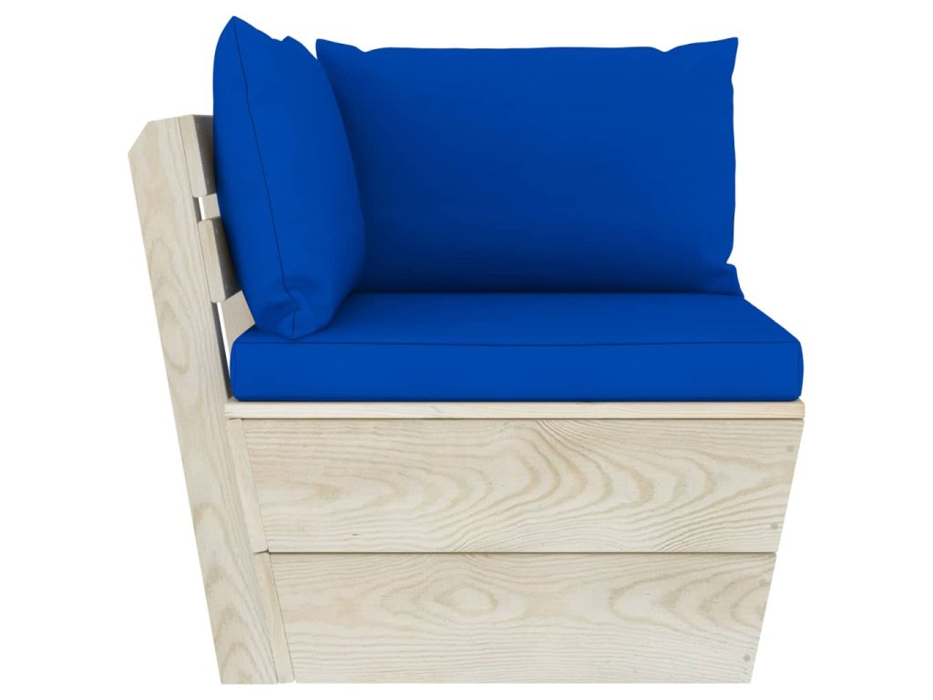 Zahradní sedací souprava je vyrobená z impregnovaného smrkového dřeva, takže je velice odolná a stabilní. Má pevnou konstrukci a nevyžaduje téměř žádnou údržbu. Stolek má robustní horní desku, je proto ideální k odkládání nápojů a občerstvení na dosah ruky. Podušky na palety mají hustě polstrované čalounění ze 100% polyesteru, jsou nesmírně měkké a zajistí vám maximální pohodlí. Zahradní pohovky mají modulární design, a tak je můžete přizpůsobit každému prostředí dle svých představ.