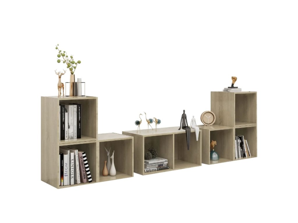 Set TV skříněk nabízí spoustu úložného prostoru pro přehledné uspořádání vašich časopisů, knih, DVD a multimediálních zařízení, které chcete mít vždy po ruce. Každou televizní skříňku lze navíc umístit vodorovně nebo svisle, takže bude dokonalým doplňkem do vašeho obývacího pokoje. Navíc se snadno čistí vlhkým hadříkem.
