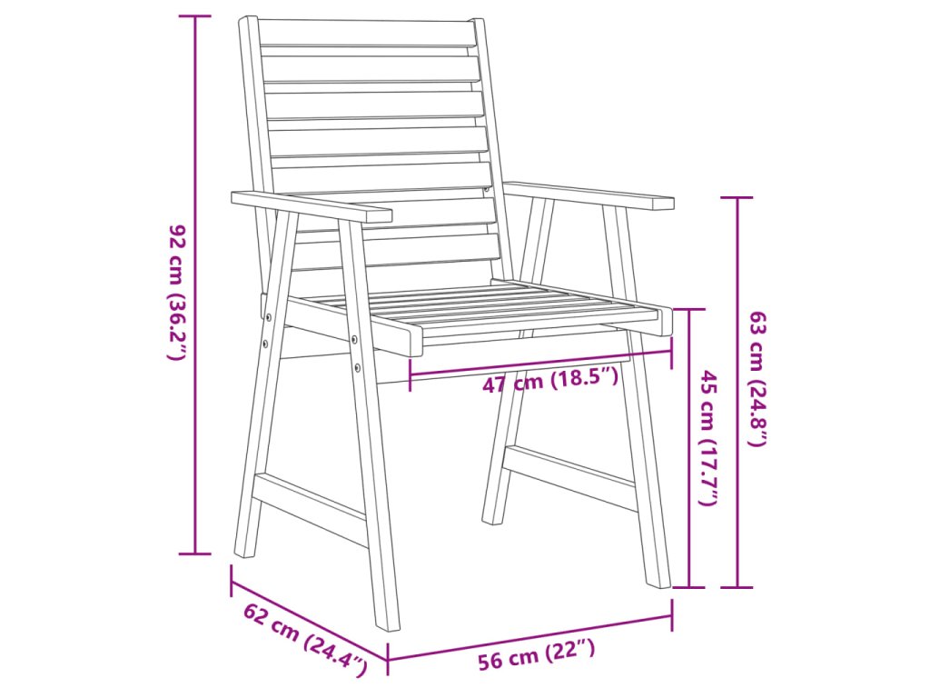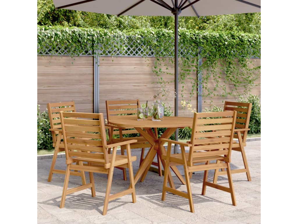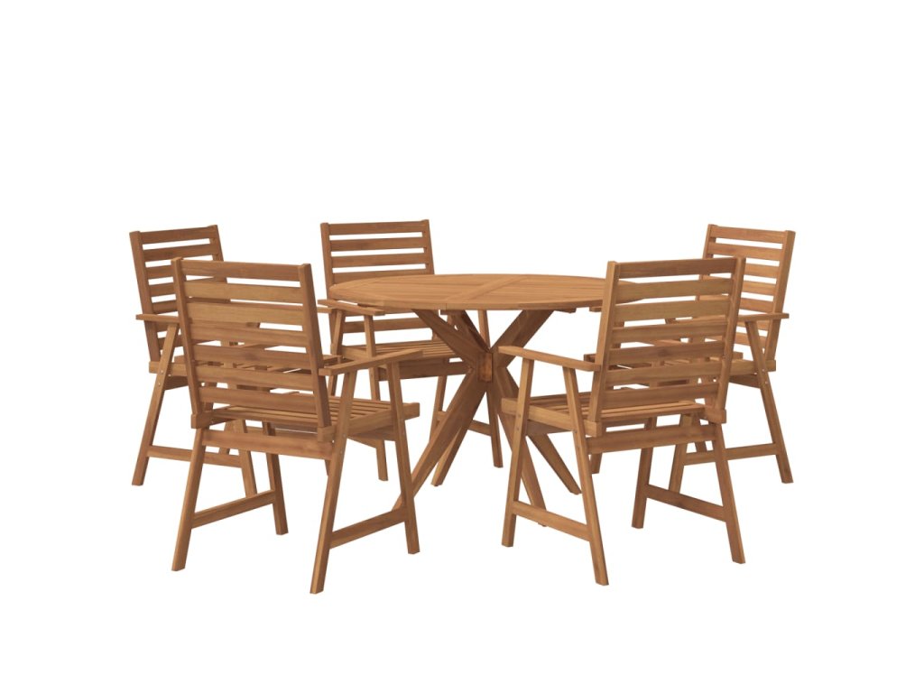 - Masivní akáciové dřevo: Venkovní jídelní set je vyroben z masivního akáciového dřeva, které zajišťuje pevnost a odolnost. Masivní akáciové dřevo je nádherný přírodní materiál. Akáciové dřevo má rovnou kresbu a obsahuje suky, které materiálu dodávají jeho charakteristický, rustikální vzhled.
