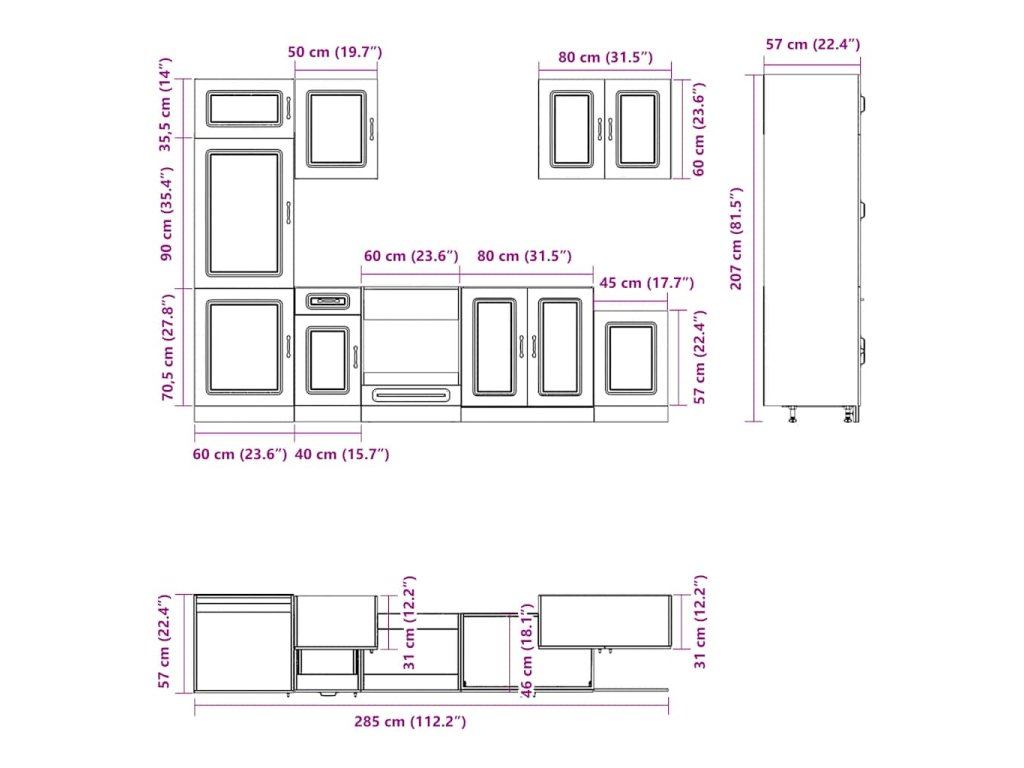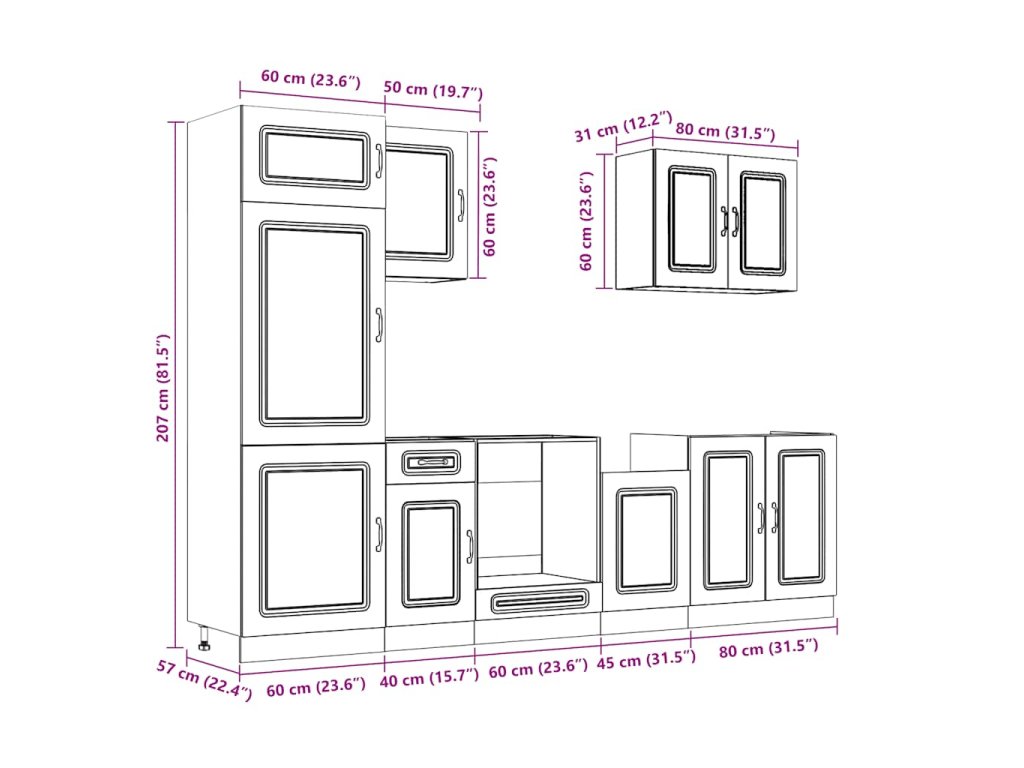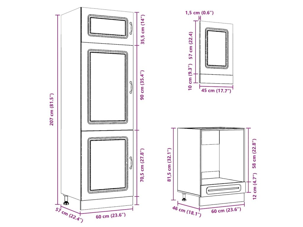 - 1x skříňka na troubu: 60 x 46 x 81,5 cm (Š x H x V)