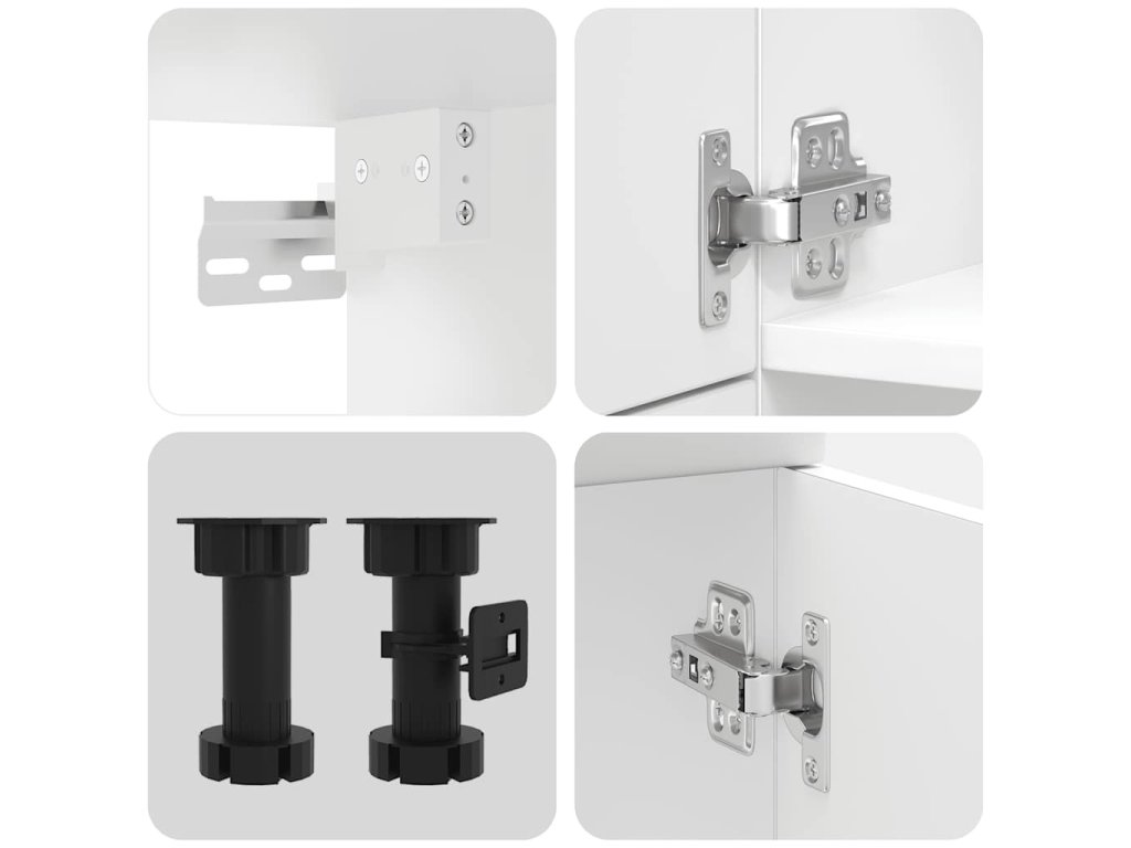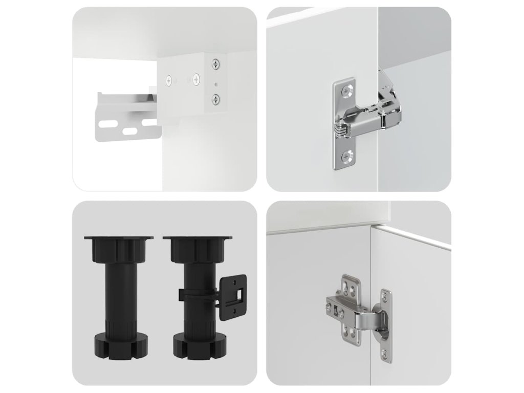 - Nastavitelné nožičky: Spodní skříňky jsou vybaveny nastavitelnými nožičkami, které lze výškově nastavit tak, aby vyhovovaly uspořádání vaší kuchyně.