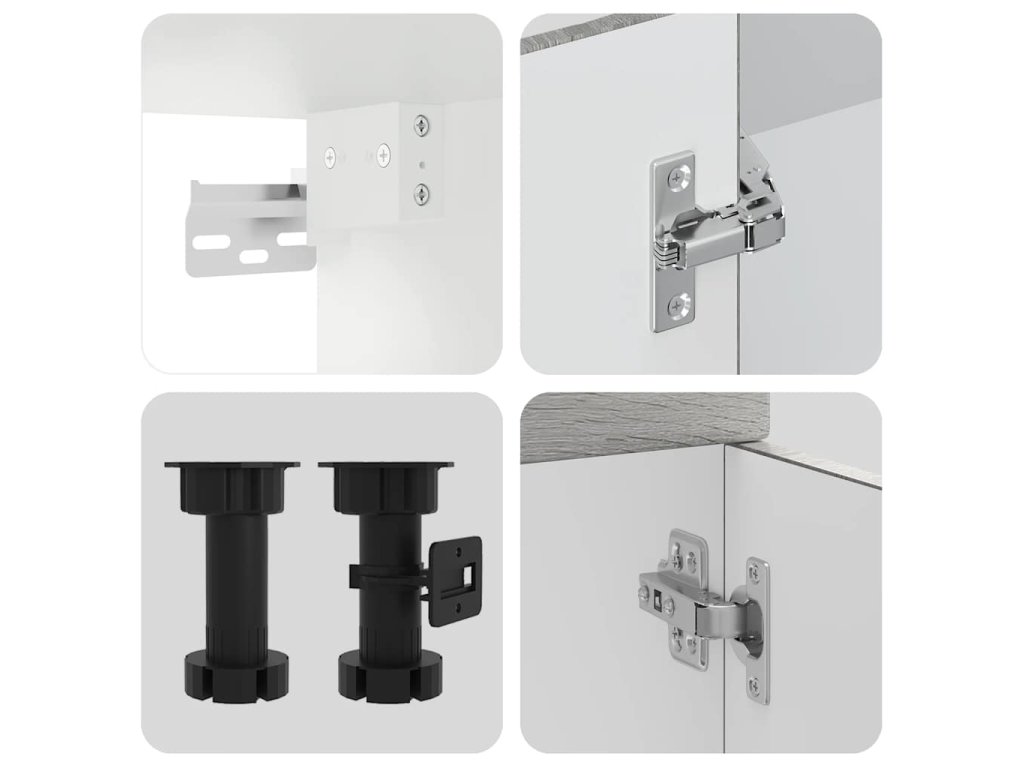 - Nastavitelné nožičky: Spodní skříňky jsou vybaveny nastavitelnými nožičkami, které lze výškově nastavit tak, aby vyhovovaly uspořádání vaší kuchyně.