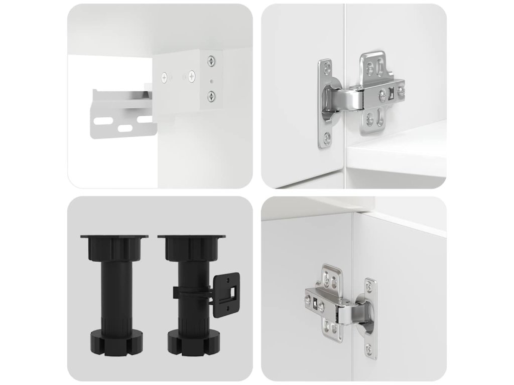 - Nastavitelné nožičky: Spodní skříňky mají nastavitelné nožičky, jejichž výšku lze nastavit tak, aby vyhovovaly uspořádání vaší kuchyně.