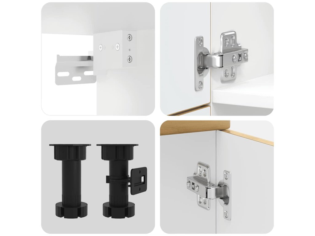- Nastavitelné nožičky: Spodní skříňky mají nastavitelné nožičky, jejichž výšku lze nastavit tak, aby vyhovovaly uspořádání vaší kuchyně.