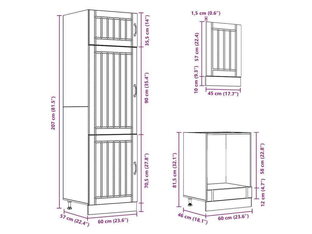 - 1x skříňka na troubu: 60 x 46 x 81,5 cm (Š x H x V)