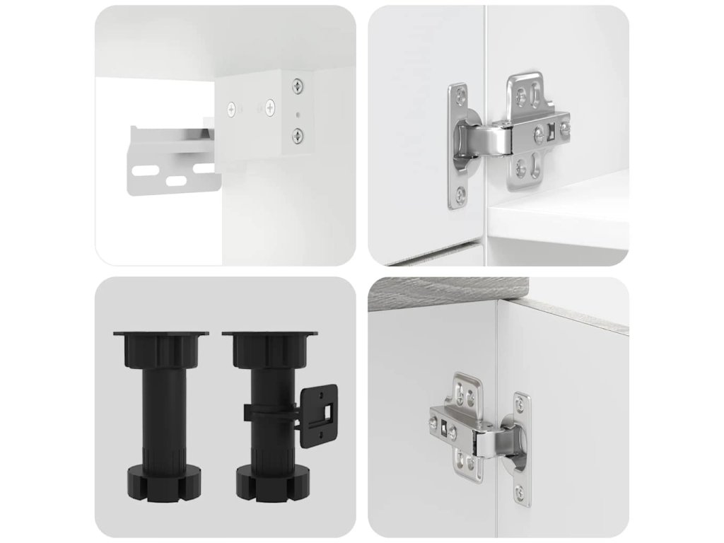 - Nastavitelné nožičky: Spodní skříňky jsou vybaveny nastavitelnými nožičkami, které lze výškově nastavit tak, aby vyhovovaly uspořádání vaší kuchyně.