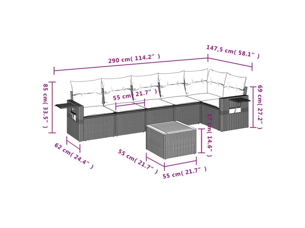 Tato zahradní sedací souprava je dokonalým doplňkem vaší zahrady, terasy nebo dvorku a poskytne vám pohodlné a příjemné místo, kde si můžete povídat s rodinou a přáteli nebo jen tak odpočívat a užívat si pobyt venku.