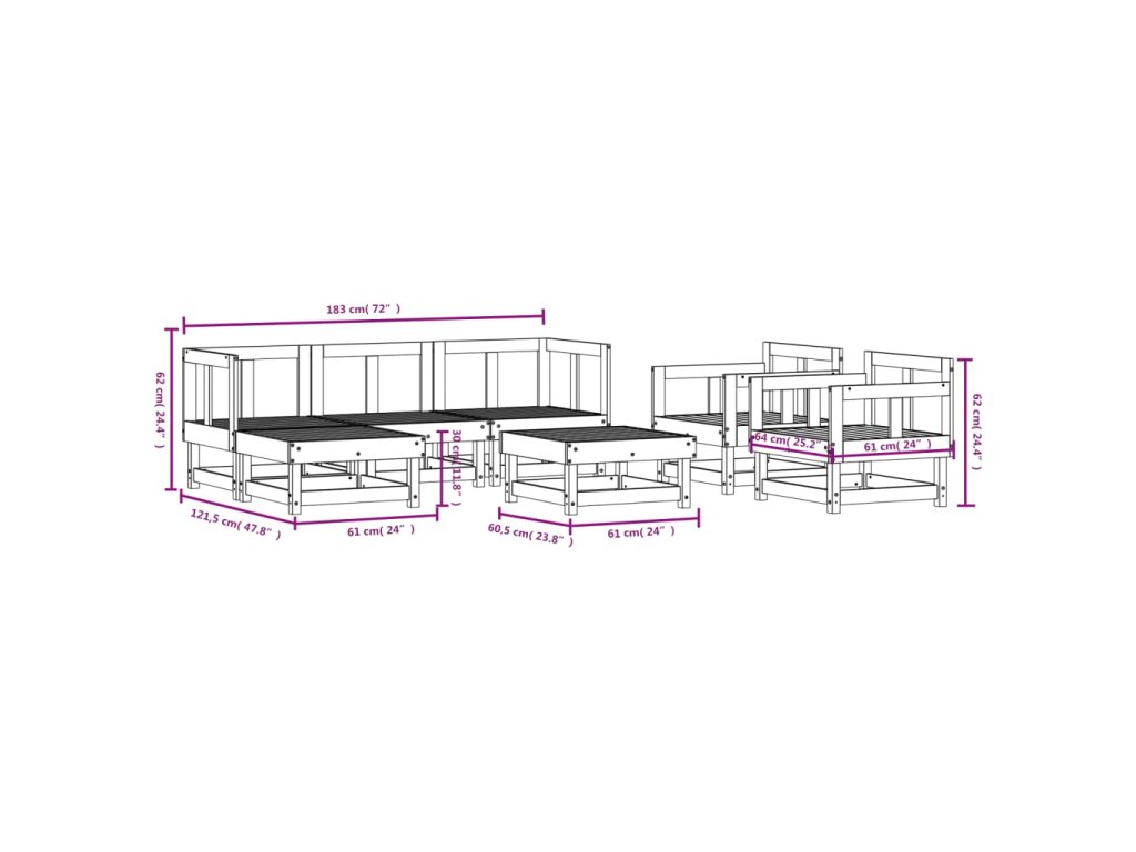 - Rozměry středové pohovky: 61 x 60,5 x 62 cm (Š x H x V)