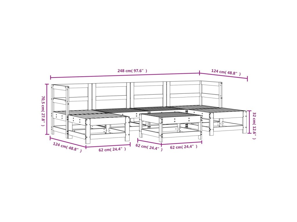 - Rozměry středové pohovky: 62 x 62 x 70,5 cm (D x Š x V)
