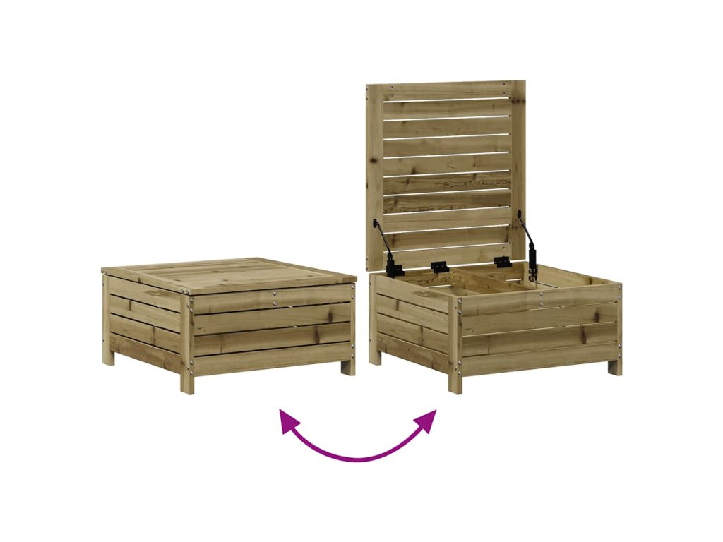 - Všestranné použití: Venkovní taburet s víkem může sloužit nejen k sezení nebo k vyložení nohou, ale také jako konferenční stolek, kam si můžete odložit vaše nápoje nebo občerstvení. Zahradní nábytek je opatřen úložným prostorem pod sedákem.