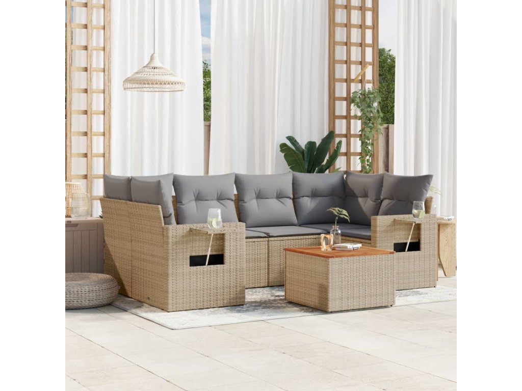 - Materiál: PE ratan, práškově lakovaná ocel, masivní akáciové dřevo s olejovou povrchovou úpravou