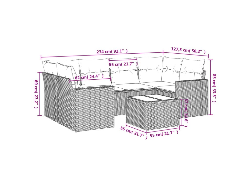 Tato zahradní sedací souprava je dokonalým doplňkem vaší zahrady, terasy nebo dvorku a poskytne vám pohodlné a příjemné místo, kde si můžete povídat s rodinou a přáteli nebo jen tak odpočívat a užívat si pobyt venku.