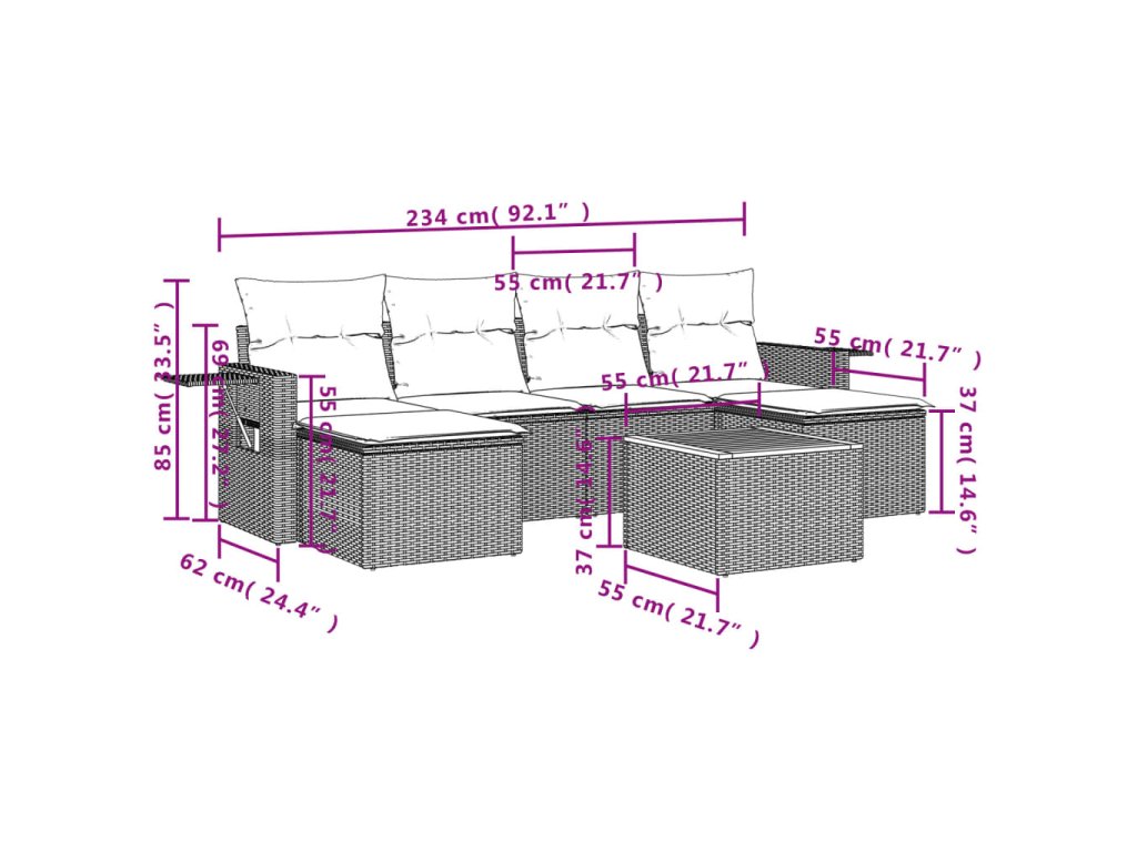 Tato zahradní sedací souprava je dokonalým doplňkem vaší zahrady, terasy nebo dvorku a poskytne vám pohodlné a příjemné místo, kde si můžete povídat s rodinou a přáteli nebo jen tak odpočívat a užívat si pobyt venku.