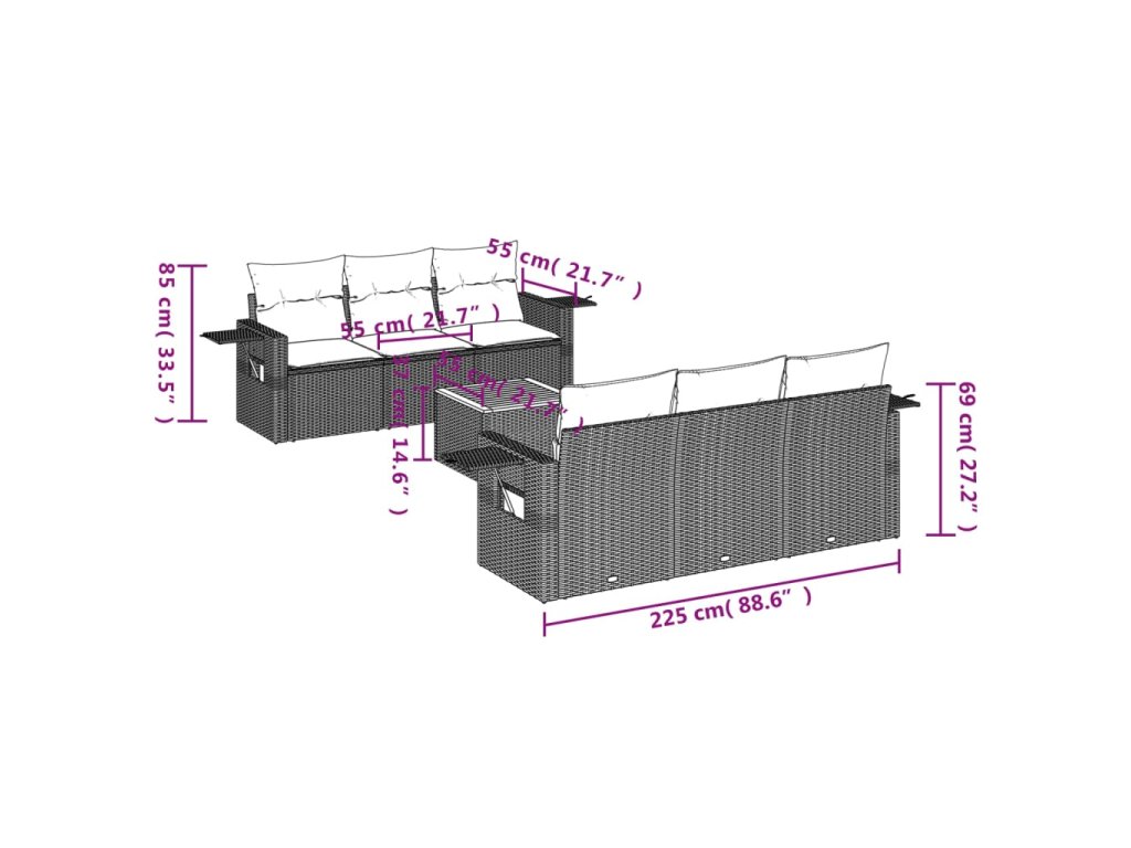 Tato zahradní sedací souprava je dokonalým doplňkem vaší zahrady, terasy nebo dvorku a poskytne vám pohodlné a příjemné místo, kde si můžete povídat s rodinou a přáteli nebo jen tak odpočívat a užívat si pobyt venku.