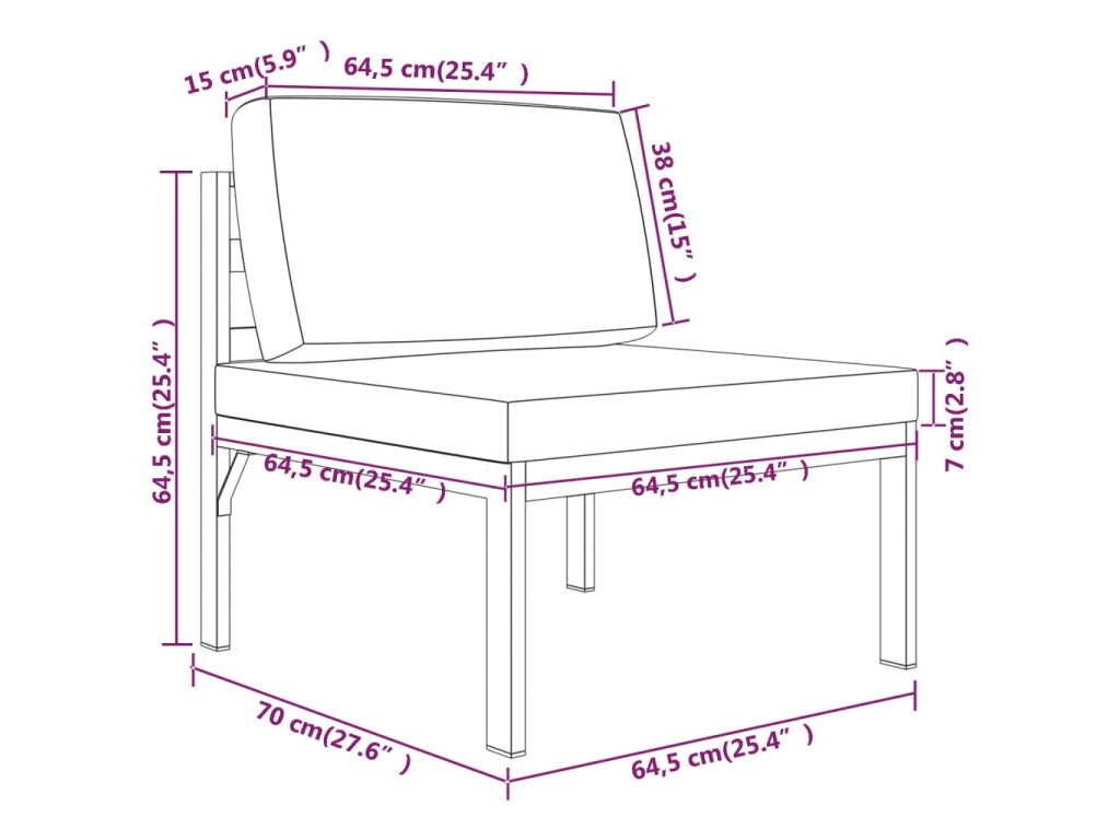 - Rozměry středové pohovky: 64,5 x 70 x 64,5 cm (Š x H x V)