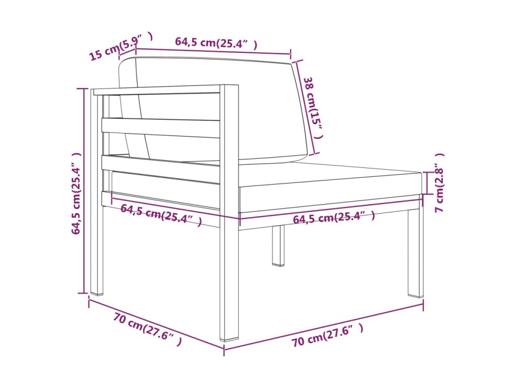 - Rozměry středové pohovky: 64,5 x 70 x 64,5 cm (Š x H x V)