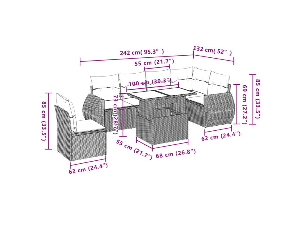 Tato zahradní sedací souprava je dokonalým doplňkem vaší zahrady, terasy nebo dvorku a poskytne vám pohodlné a příjemné místo, kde si můžete povídat s rodinou a přáteli nebo jen tak odpočívat a užívat si pobyt venku.
