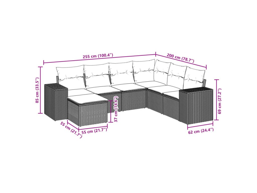 Tato zahradní sedací souprava je dokonalým doplňkem vaší zahrady, terasy nebo dvorku a poskytne vám pohodlné a příjemné místo, kde si můžete povídat s rodinou a přáteli nebo jen tak odpočívat a užívat si pobyt venku.