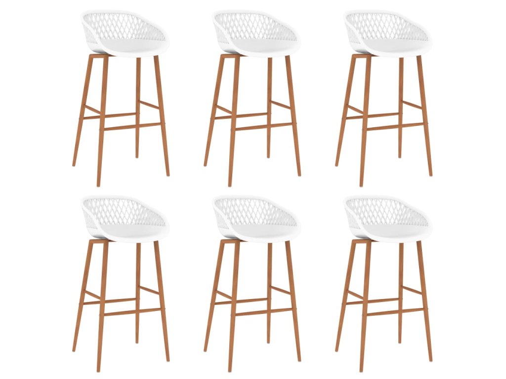 Náš vysoký stůl má horní desku z odolné MDF a silné kovové nohy, které svým vzhledem připomínají dřevo. Barové stoličky mají ergonomicky tvarované sedáky s integrovaným nízkým opěradlem v síťovaném provedení. Jelikož jsou vyrobené z robustního PP a podepírají je pevné kovové nohy s termotransferovým potiskem v imitaci dřeva, jsou mimořádně bytelné a dlouho vám vydrží.