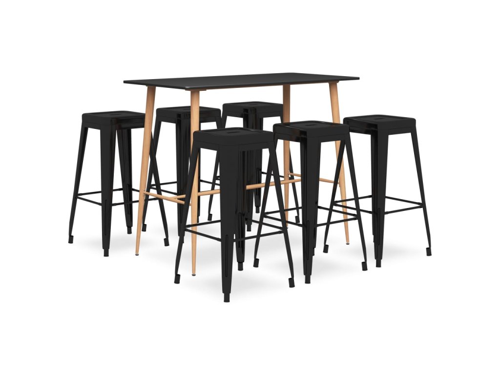 Náš vysoký stůl má horní desku z odolné MDF a pevné kovové nohy, které vzhledem připomínají dřevo. Barové stoličky jsou vyrobené z natíraného kovu, což jim zajišťuje mimořádnou robustnost a dlouhou životnost. Zesílená příčka pod sedákem a opěrka nohou zlepšují stabilitu. Židle lze navíc stohovat, aby se vám snáze skladovaly, jedná se tedy o dokonalé řešení pro omezené prostory.