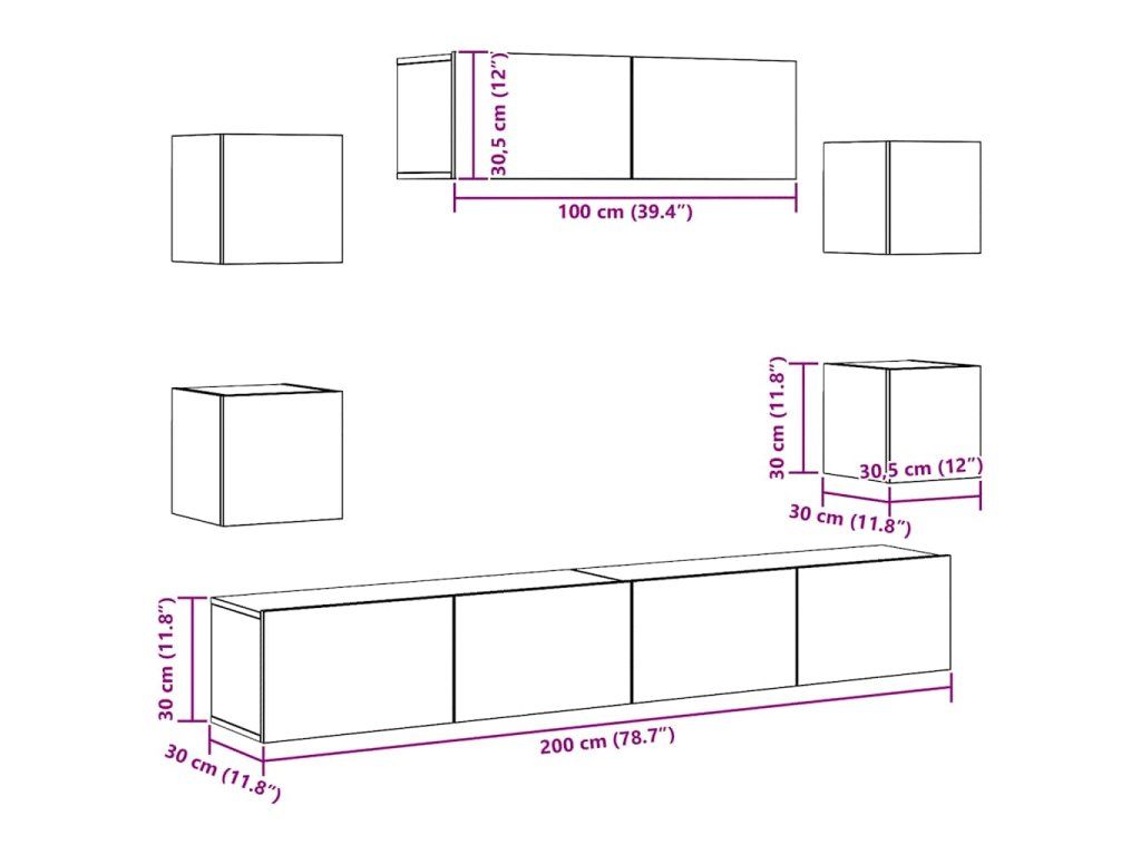 - 4x TV skříňka: 30,5 x 30 x 30 cm (D x Š x V)