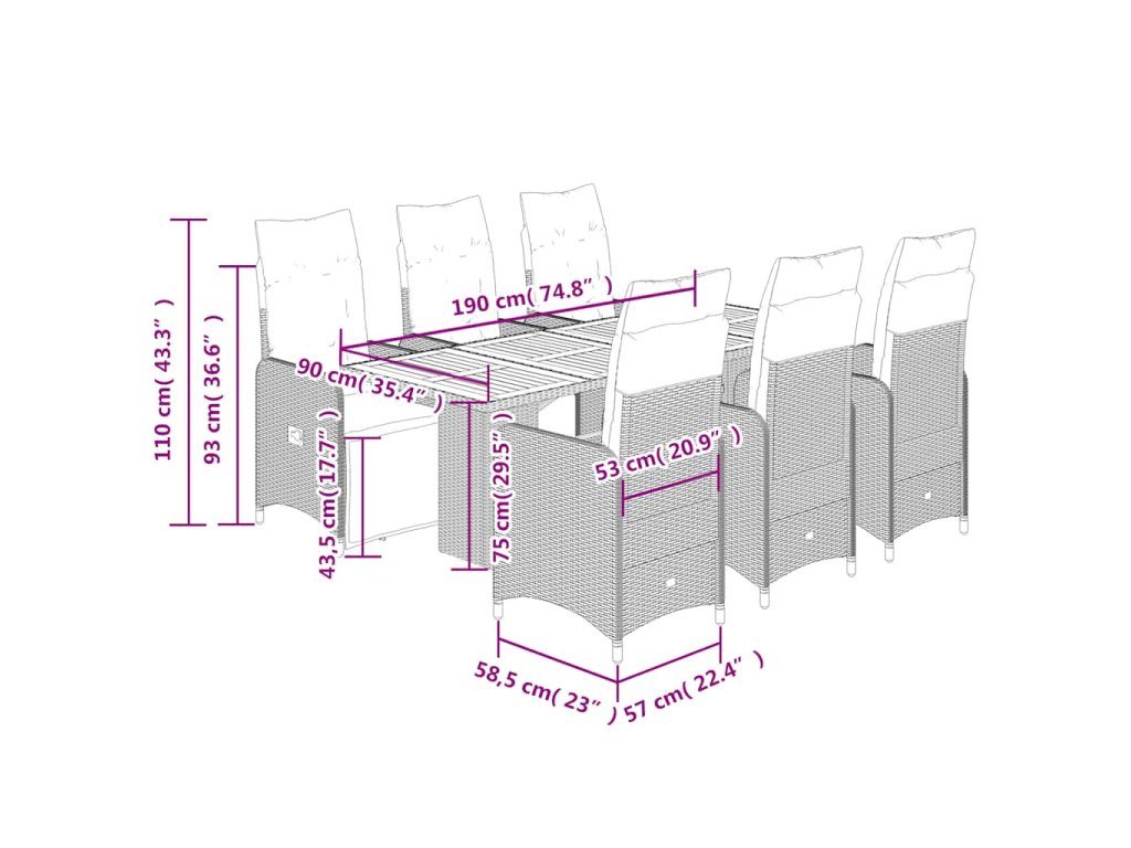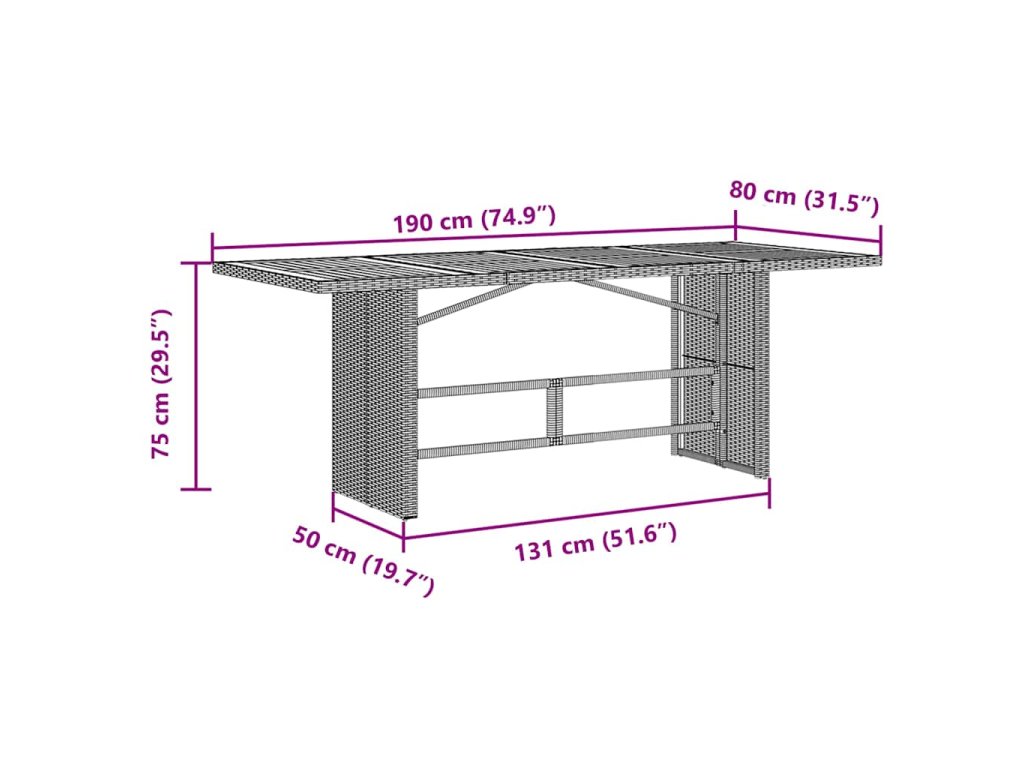 - Materiál: PE ratan, ocel, masivní akáciové dřevo s olejovou povrchovou úpravou