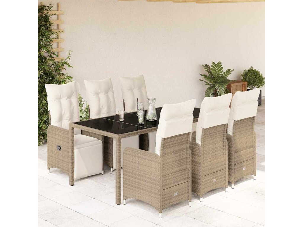 - Materiál: PE ratan, práškově lakovaná ocel, tvrzené sklo