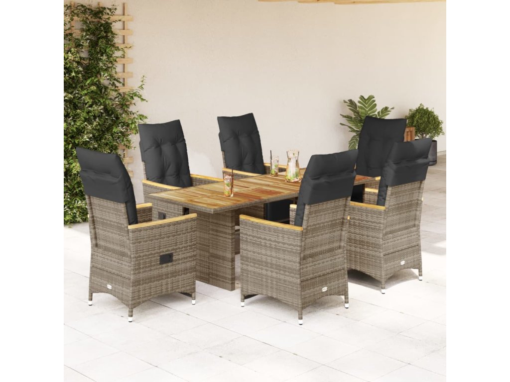 - Materiál: PE ratan, ocel, masivní akáciové dřevo s olejovou povrchovou úpravou