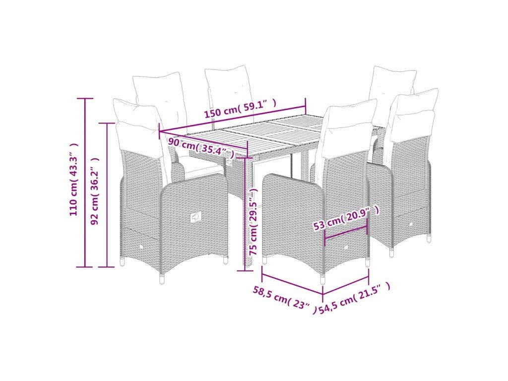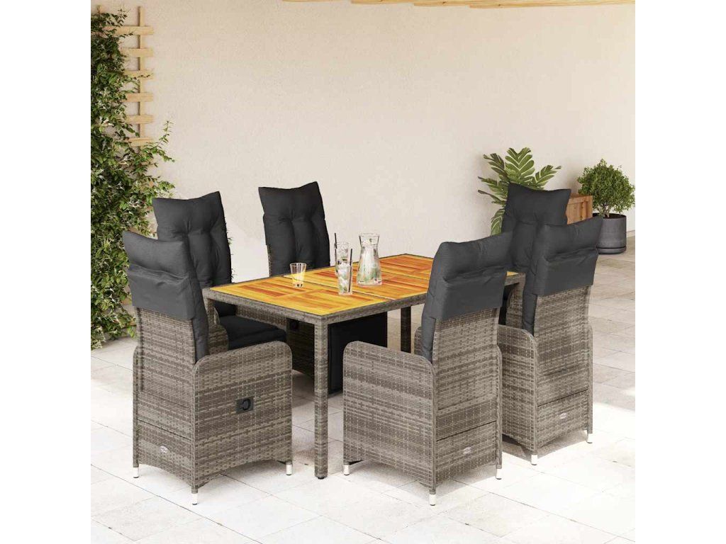 - Materiál: PE ratan, ocel, masivní akáciové dřevo s olejovou povrchovou úpravou