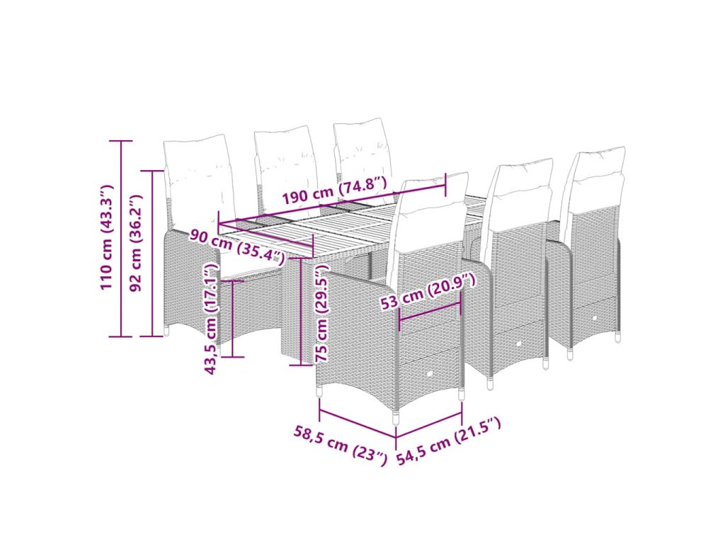 - Materiál: PE ratan, ocel, masivní akáciové dřevo s olejovou povrchovou úpravou