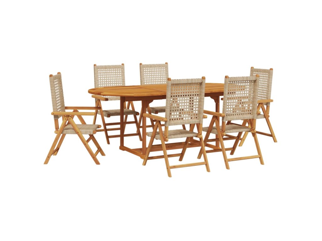 - Materiál: masivní akáciové dřevo s olejovou povrchovou úpravou, PE ratan
