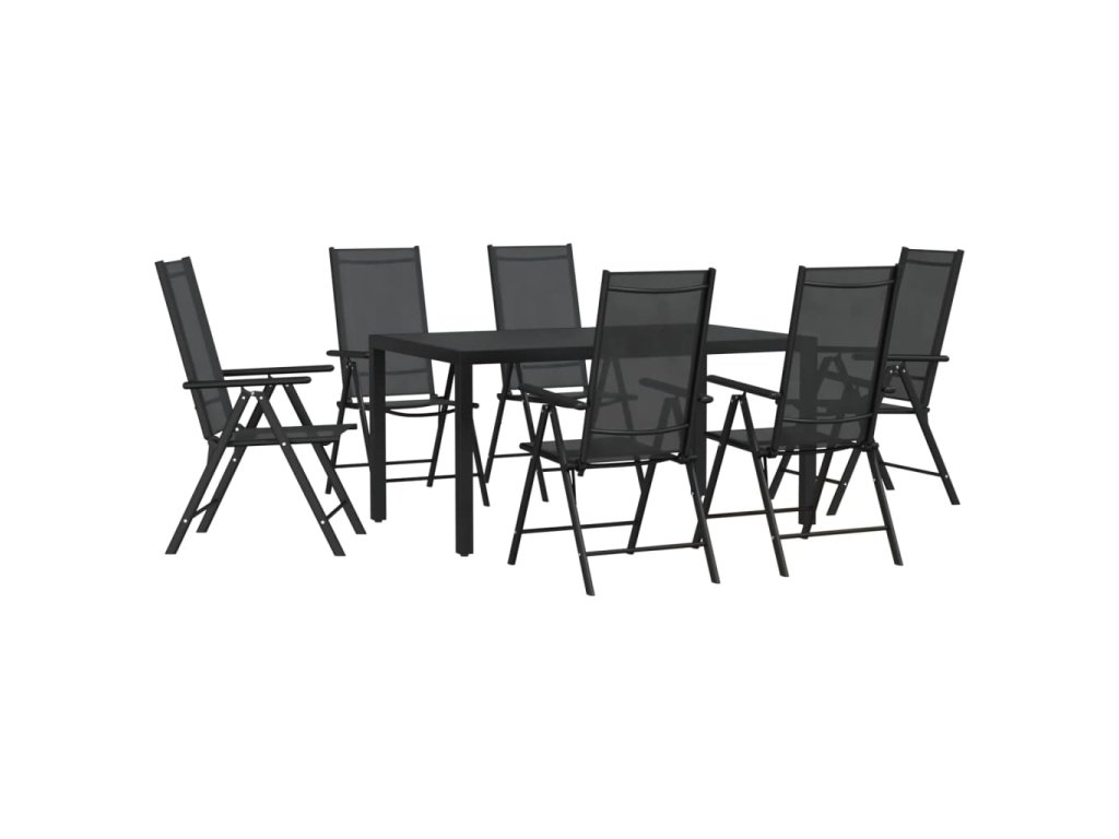 - Robustní rám: Jelikož má hliníkový rám s práškovým nástřikem, je tento jídelní set robustní, odolný a vhodný pro venkovní použití.