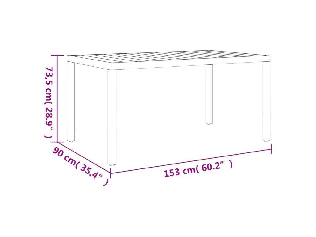 - Praktický stůl: Jídelní stůl má desku z dřevoplastu, snadno se tedy čistí a hodí se pro venkovní použití. Robustní deska stolu se skvěle hodí k podávání občerstvení a nápojů nebo k vystavení váz, mís s ovocem a jiných dekorativních předmětů.