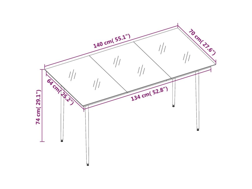 - Rozměry: 140 x 70 x 74 cm (D x Š x V)