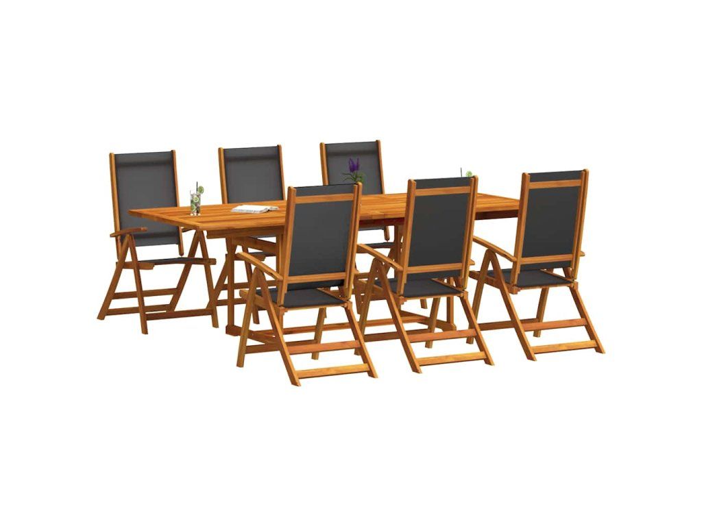 - Masivní akáciové dřevo: Venkovní jídelní set je vyrobený z masivního akáciového dřeva. Masivní akáciové dřevo je nádherný přírodní materiál. Akáciové dřevo je tropické tvrdé dřevo, které má hustou strukturu a je pevné a odolné.