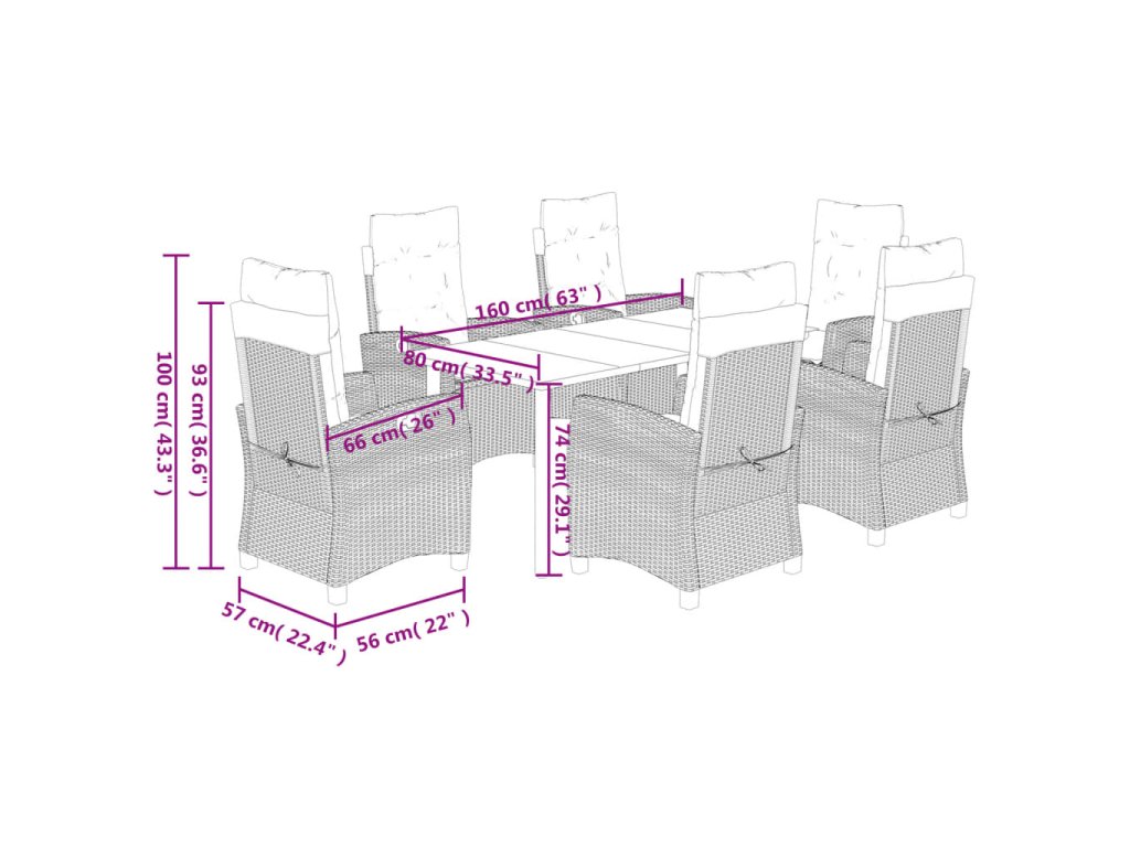 - Rozměry při poloze vsedě: 57 x 66 x 93 cm (Š x H x V)