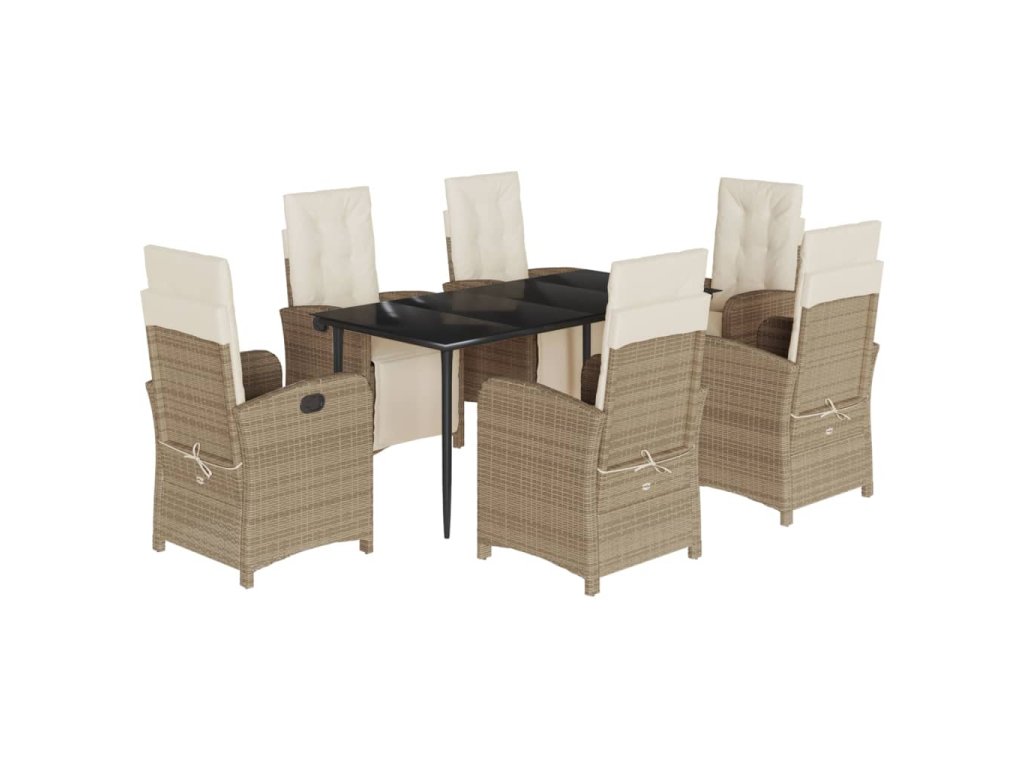 - Materiál: PE ratan, práškově lakovaná ocel, tvrzené sklo