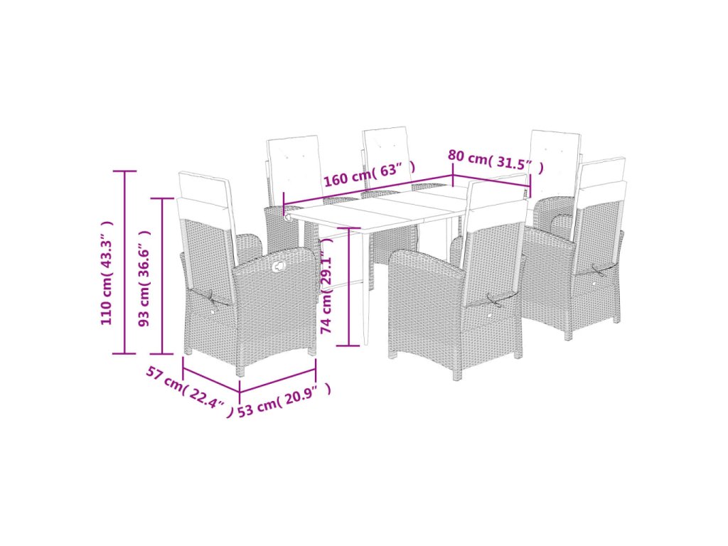- Rozměry při poloze vsedě: 57 x 60 x 93/110 cm (Š x H x V)