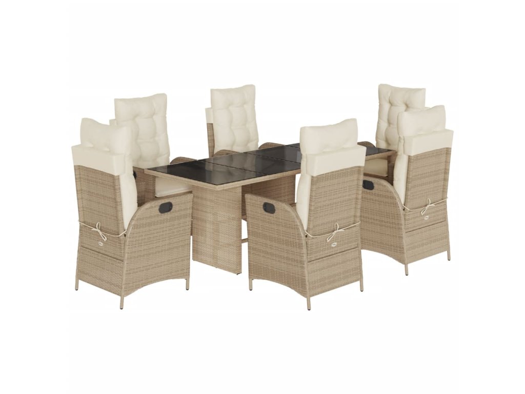 - Materiál: PE ratan, práškově lakovaná ocel, tvrzené sklo