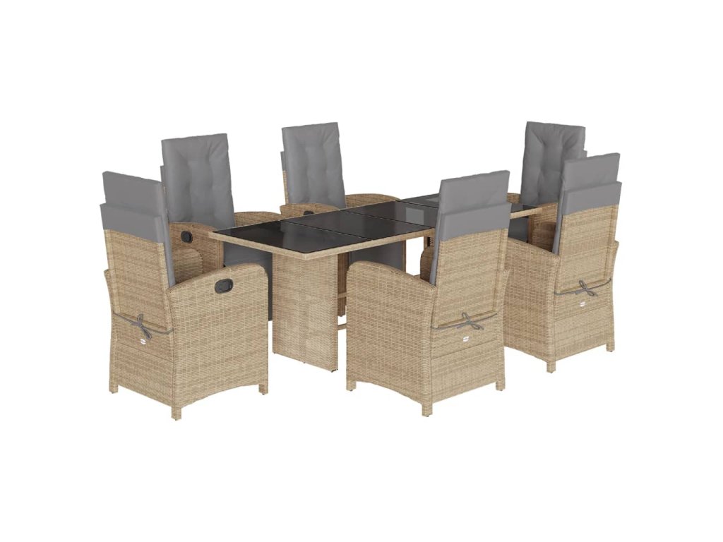 - Materiál: PE ratan, práškově lakovaná ocel, tvrzené sklo