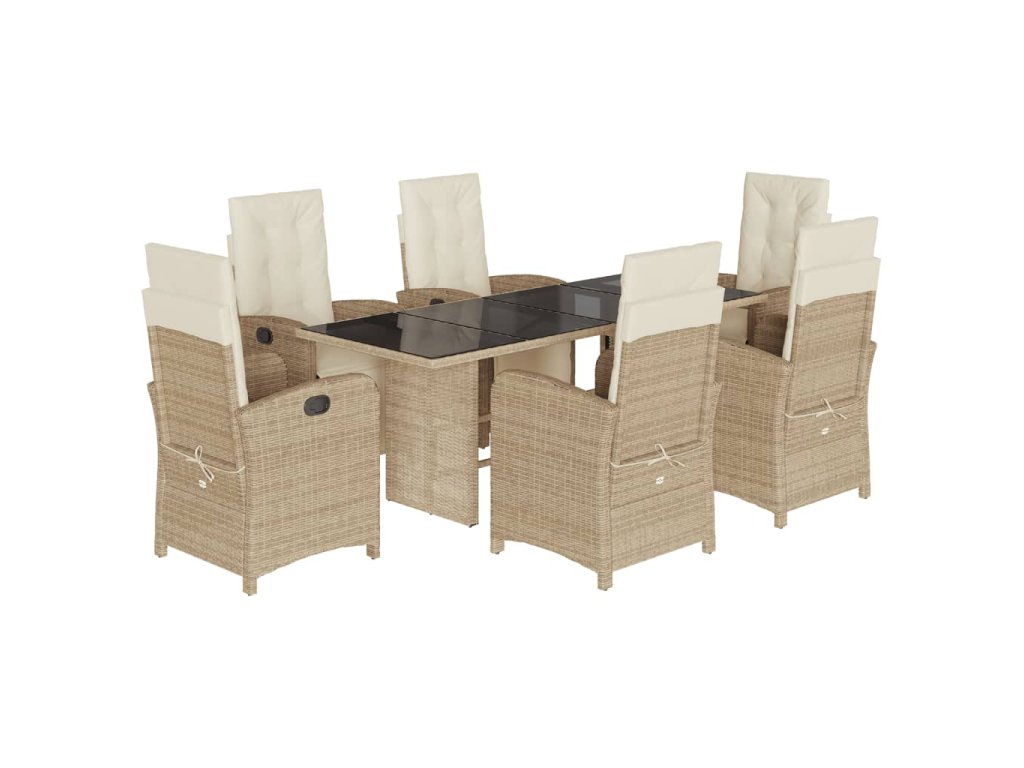 - Materiál: PE ratan, práškově lakovaná ocel, tvrzené sklo