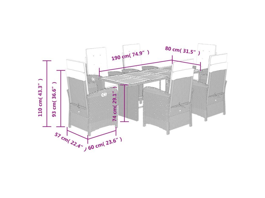 - Materiál: PE ratan, práškově lakovaná ocel, masivní akáciové dřevo