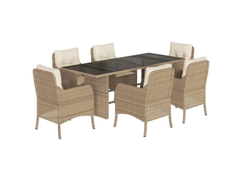 - Materiál: PE ratan, práškově lakovaná ocel, tvrzené sklo