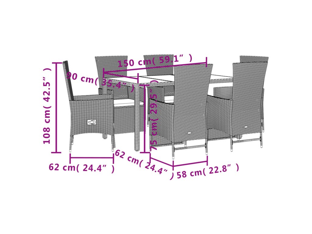 - Materiál: PE ratan, práškově lakovaná ocel, tvrzené sklo