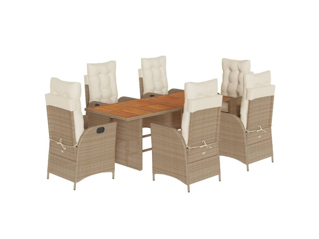 - Materiál: PE ratan, práškově lakovaná ocel, masivní akáciové dřevo s olejovou povrchovou úpravou