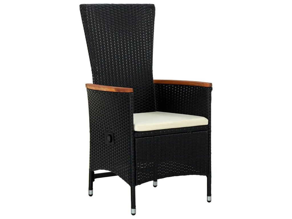 Stůl i židle mají rámy z práškově lakované oceli, jsou tedy robustní, stabilní a vhodné pro každodenní venkovní použití. Židle jsou vyrobené z voděodolného PE ratanu, takže se snadno čistí a hodně toho vydrží. Opěradlo si můžete nastavit stisknutím tlačítka na boku. Nábytek má lehkou konstrukci, lze ho tudíž bez námahy přesouvat. Husté polstrované podušky na sedák vám navíc zajistí mimořádné pohodlí. Jejich polyesterové potahy jsou nenáročné na údržbu a dají se stáhnout a vyprat. Hladká skleněná stolní deska, kterou jednoduše očistíte vlhkým hadříkem, je ideální k podávání jídla a pití nebo k vystavení různých dekorativních předmětů.