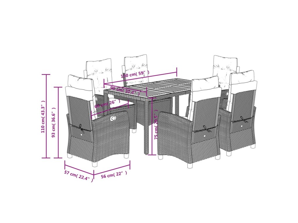 - Materiál: PE ratan, práškově lakovaná ocel, masivní akáciové dřevo s olejovou povrchovou úpravou
